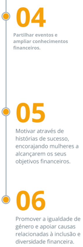 Vamos capacitar as mulheres a tomarem controlo das suas finanças pessoais e a tomarem decisões informadas sobre investimentos, economia e planeamento financeiro.