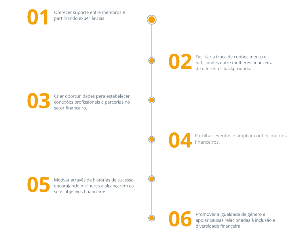 Vamos capacitar as mulheres a tomarem controlo das suas finanças pessoais e a tomarem decisões informadas sobre investimentos, economia e planeamento financeiro.